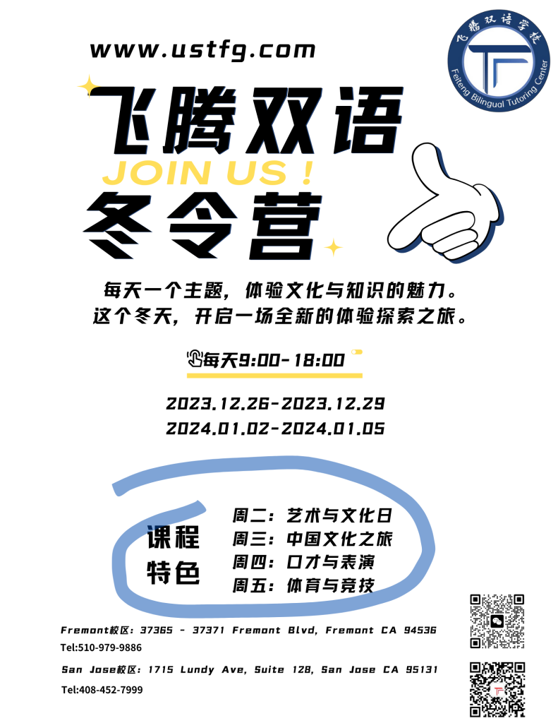 2023飞腾Fremont校区年终演出回顾Issuing time:2023-12-22 16:11 01 舞龙舞狮 Lion Dance ![]() ![]() △Alin, Aris, David, Linmo, Quintus, Sampson 舞狮表演打鼓打镲,看似简单,鼓点配合狮子步伐的变化,既需要每个人熟练掌握自己的动作,也要彼此配合调整节奏。而舞龙表演则更是高强度的动作,对身体力量和耐力都有很高的要求。孩子们独立完成了整套开场表演,虽然稍显稚嫩,但你们爱上这种中国传统的表现形式,这就是最重要的了。 02 诗朗诵 Poetry Recitation ![]() △Dev 戴夫同学的中文学习进步速度是让人惊讶的,对中国文化的理解和喜欢也是让人感动的,其实戴夫可以背很多很复杂的诗了,明年我们继续挑战。 03 手指舞 Finger Dance ![]() △Aubrey, Casper, Darius, Evelyn, Kayla, Jayden, Shawn, Yuhan, Zion 有同学说飞腾的中文课像哆啦A梦的百宝袋,随时都有朗朗上口的儿歌,学习量词的儿歌、活动手指的儿歌、可爱又有趣的儿歌,学习呀,最重要的就是开心啦! 04 声律启蒙 The Enlightenment of Rhyme ![]() △Avah, Molly “云对雨,雪对风,晚照对晴空” ,古体诗的音律,诗歌中音节的平仄和押韵;大量的修辞技巧,对古代文学的借鉴;平衡,既有美感的展现,又要有深刻的思想和内涵。虽然两个小姑娘很多的意思都还不懂,但中文的优美意境已经在她们心中深深扎根,她们定能领略多语言带来的趣味。 05 钢琴独奏 Piano Solo ![]() △Claire Claire是一位热爱音乐、表现力强的小艺术家。通过她灵巧的手指,将观众带入一段美妙的音乐之旅。期待感受她更多的音乐表达,也希望她享受每个充满艺术魅力的瞬间。 06 三句半 Three and Half Sentences ![]() △Aidan, Declan, Jasper C, Zion 欢呼叫好声音最大的节目,四个男孩子辛苦地背了一个月,其实临表演前一天配合得还有些磕磕绊绊,但终于还是把所有的词都背牢了、动作记熟了,看着四个小朋友们拿着话筒并肩站在舞台上,一句接一句流畅地配合着,我们真的很为你们骄傲。 07 双刀表演 Double Broadsword ![]() △Colette 身姿优雅又富有力量感,集美感、技艺和飒爽英姿于一体的表演,大家都沉浸在她独特的刀光剑影之中了。 08 诗朗诵:写给云 Poetry Recitation: A Letter to the Cloud ![]() ![]() △Avah, Claire, Molly, Zoe 有个性,向往自由,也是老师们共同的期望。在飞腾,做小鹿大象小鸟青蛙猪八戒都可以,你们都是自由自在的云。 09 功夫:五步拳、查拳 Kungfu: Five Steps Fist, Cha Fist ![]() ![]() △All 功夫表演总是最让人期待的,家里的那个小宝宝,换好功夫服,就变成了舞台上的武林高手。耍花枪,比谁都漂亮,一个后空翻,马步扎得漂亮! 10 合唱:鲁冰花、新年好 Chorus: Lu Bing Hua, Happy New Year ![]() ![]() △All 看孩子们唱着妈妈们小时候唱的歌,文化的传承、习惯的传承、模样的传承,孩子们就在这些传承中一天天地长大了,愿这些能成为孩子们人生旅途中坚实的支柱,为他们的未来铺一条厚重又踏实的路。 2023飞腾Fremont校区 年终演出回顾视频↓ ![]() ![]() 飞腾双语 AFTER-SCHOOL 2023飞腾冬令营即将开始 欢迎来自各国不同文化背景的孩子加入 SAN JOSE校区 学校地址: 1715 Lundy Ave, Suite 128, San Jose, CA 95131 ☎️电话号码: (408)452-7999 (Mon-Fri 10:00-19:00) Wechat ID: USAPDINC ![]() FREMONT校区 学校地址: 37365 - 37371 Fremont Blvd, Fremont, CA 94536 ☎️电话号码: (510)979-9886 (Mon-Fri 10:00-19:00) Wechat ID: FeitengFremont ![]() Website: ustfg.com |